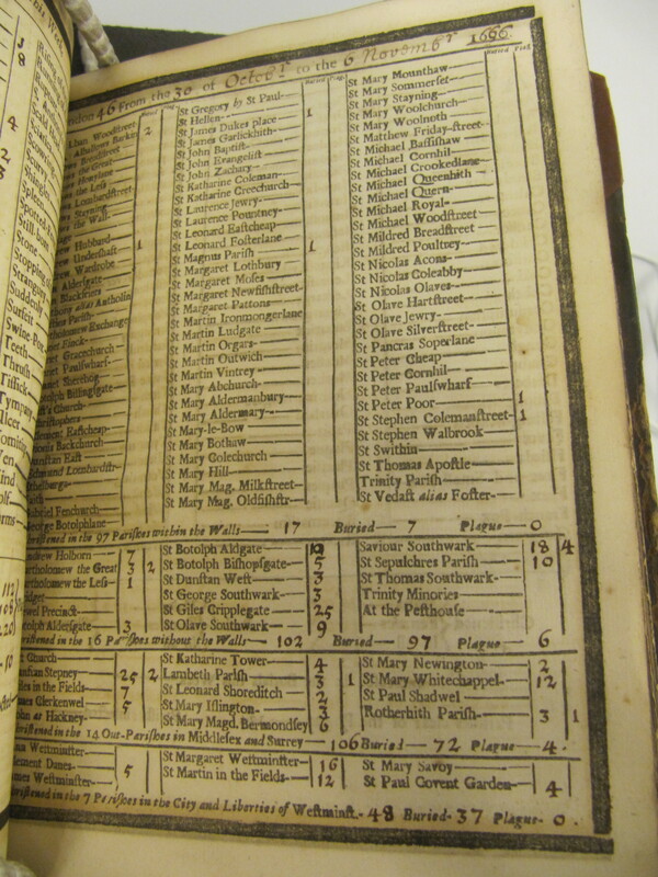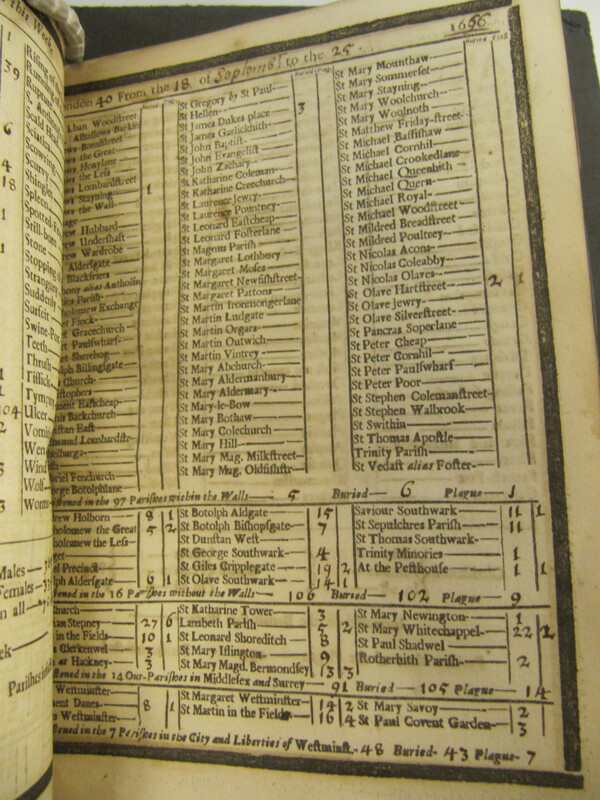 Of note, the Great Fire of London occurred September 2 through September 5, 1666, during Weeks 37 and 38. Weeks 37, 38, and 39 are combined due to the fire and its aftermath.